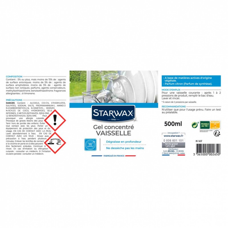 Le Gel vaisselle concentré dégraisse en profondeur et sèche rapidement sans laisser de trace. Il contient un agent surgraissant pour ne pas dessécher les mains.