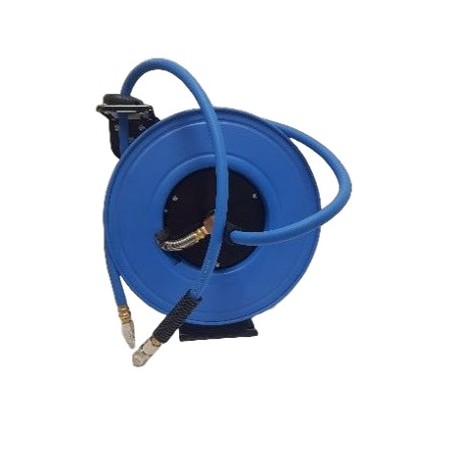 Auto-enroulant, en métal robuste et équipé d'un tuyau pour air comprimé longueur 15 m, Ø intérieur 9.3 mm.