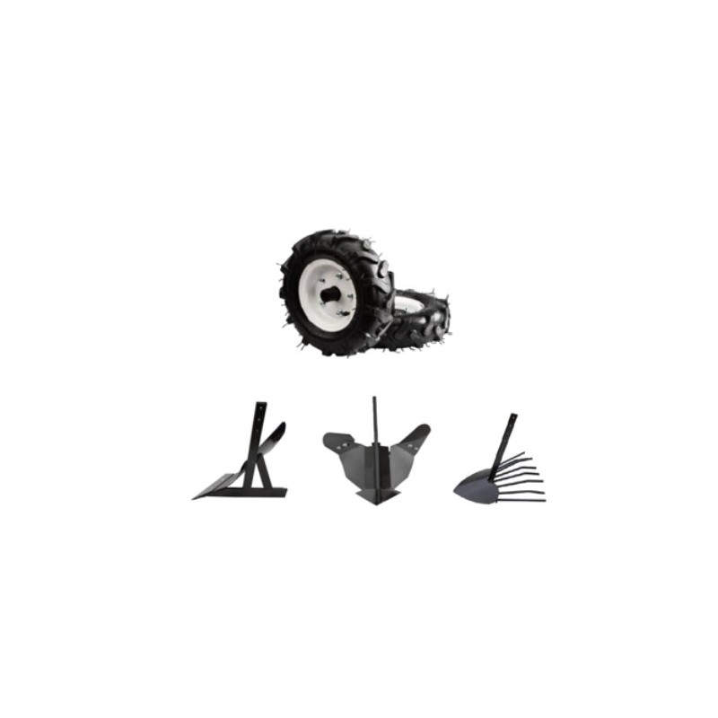 2 roues 4.00 x 10 à moyeux fixe, arrache pommes de terre, butteur, charrue simple.