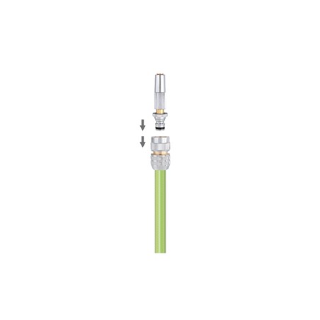 Lance avec jet réglable à son propre gré : de complètement fermé à complétement ouvert (concentré ou nébulisé). Réalisée en laiton. Raccord Quick-Click.