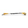 Une fois que vous avez accroché le harnais, il suffit de brancher le taille-haie ou l'élagueuse au manche télescopique de 55 cm et de l'allonger jusqu'à 2,75 m. C'est presque la hauteur d'une maison moyenne à deux étages.
