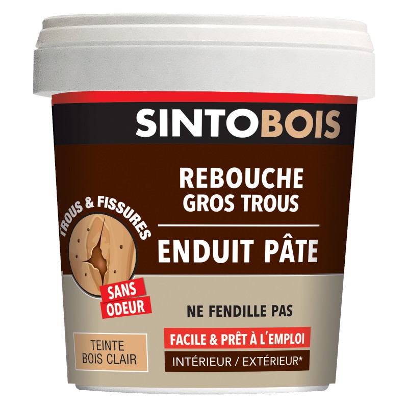 - Idéal pour reboucher les gros trous et fissures sur le bois.