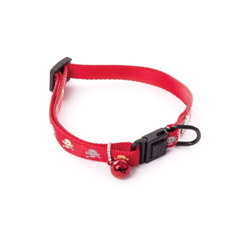 Collier rouge nylon avec motifs têtes de mort réfléchissantes