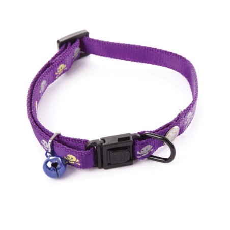 Collier mauve nylon avec motifs têtes de mort réfléchissantes