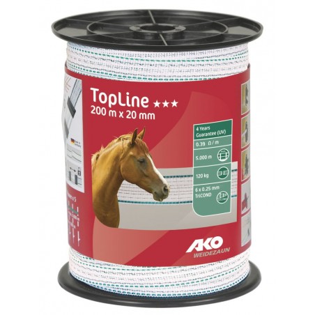 Bobine de 200 m de ruban de clôture TopLine ruban de clôture 20 mm de largeur. Coloris blanc pétrole.