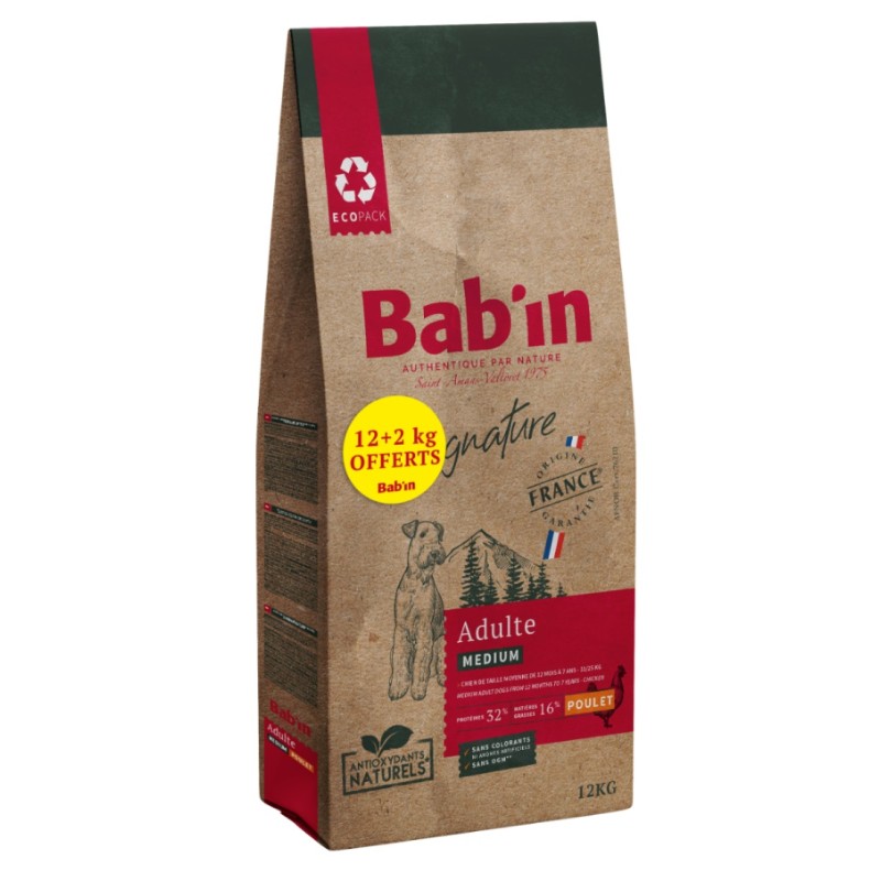 CROQUETTES SIGNATURE MEDIUM ADULTE 12KG + 2KG OFFERTS - BAB'IN