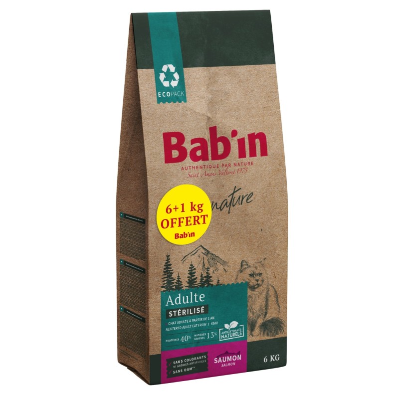 CROQUETTES SIGNATURE CHAT ADULTE STÉRILISÉ SAUMON 6KG + 1KG OFFERT - BAB'IN