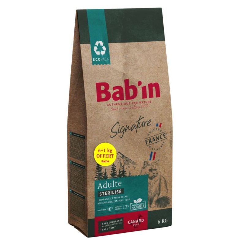 SIGNATURE CHAT ADULTE STÉRILISÉ CANARD 6 KG +1KG OFFERT - BAB'IN
