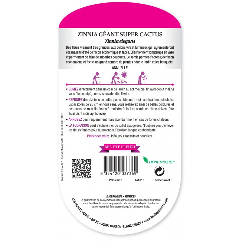 ZINNIA GÉANT SUPER CACTUS - CATÉGORIE 2 - LES DOIGTS VERTS