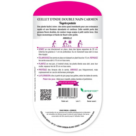 OEILLET D'INDE DOUBLE NAIN CARMEN - CATÉGORIE 2 - LES DOIGTS VERTS