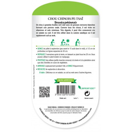 CHOU CHINOIS PE-TSAÏ - CATÉGORIE 1 - LES DOIGTS VERTS