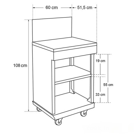 - 1 desserte : L 60 × l 51,5 × H 108cm