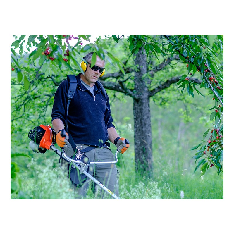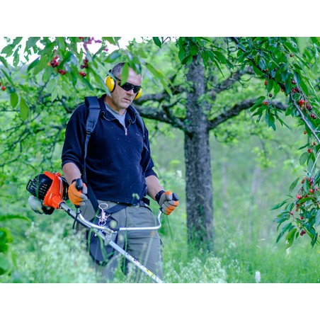 Brancard en U idéal pour travailler longtemps, car tout le poids de la machine ne repose pas sur l'utilisateur et il offre une grande amplitude de mouvement.
