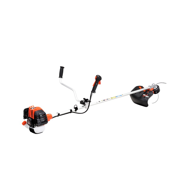 Débroussailleuse professionnelle thermique avec poignée en U et tête à couple élevé.