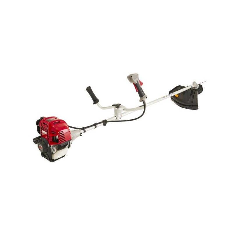 Débroussailleuse équipée d’un moteur à essence de 50 cm³, d’un manche droit, d’un guidon à double poignée et d’une largeur de coupe de 45 cm.
