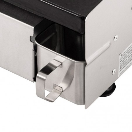 Plancha à gaz à poser en acier inoxydable, plaque de cuisson en fonte émaillée, couvercle de protection en acier inoxydable.