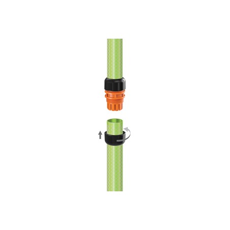 Raccord réparateur pour sauvegarder le tuyau endommagé : il unit les deux longueurs de tuyau obtenus en coupant dans le point de la perte d’eau. Pour tuyau de Ø 25 mm.