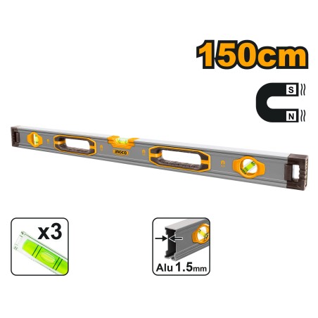 NIVEAU À BULLE MAGNÉTIQUE 3 FIOLES 150CM - INGCO