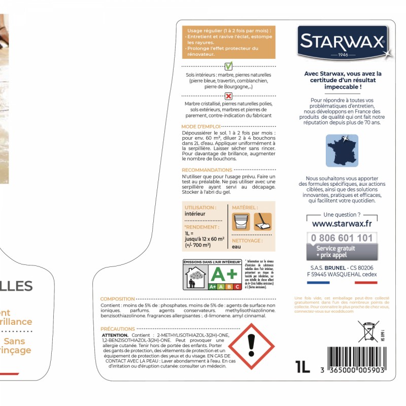 LAIT DE BRILLANCE MARBRES & PIERRES NATURELLES 1L - STARWAX