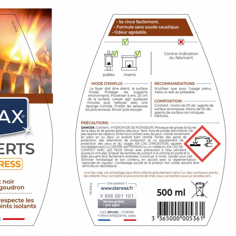 NETTOYANT INSERTS CHEMINÉES/POÊLES 500ML - STARWAX