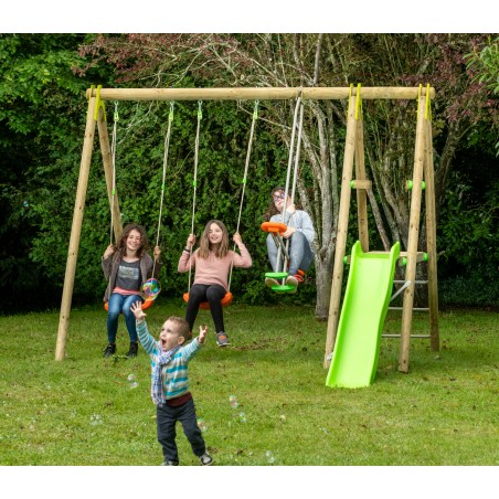 Cette station de jeux est parfaite pour les grands jardins. Elle est équipée d'agrès qui permettent de varier les plaisirs et les jeux mais aussi les apprentissages.