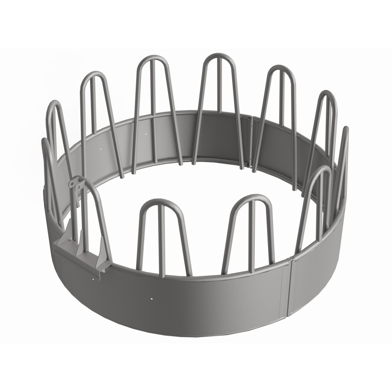 La structure du râtelier galvanisé, destiné aux bovins et équins, a été créée conformément aux normes en vigueur en matière de bien-être des animaux. Le râtelier pour bovins assure une très bonne résistance à la corrosion, ce qui prolonge sa durée de vie utile. Notre râtelier galvanisé garantit un bon accès des animaux à la nourriture et limite les pertes lors de l'alimentation. La construction du râtelier pour bovins empêche les animaux de se battre pour la nourriture. Le râtelier pour équins est composé d'éléments compacts, facilement assemblés à l'aide de vis et écrous. La structure circulaire du râtelier pour équins et bovins permet de le déplacer facilement sur le pâturage : il peut être renversé et roulé. Grâce à notre produit, vous pouvez augmenter l'hygiène sur le poste d'alimentation, vous réduisez à zéro la possibilité de contamination de la nourriture et vous consacrez moins de temps au nettoyage du poste d'alimentation.$