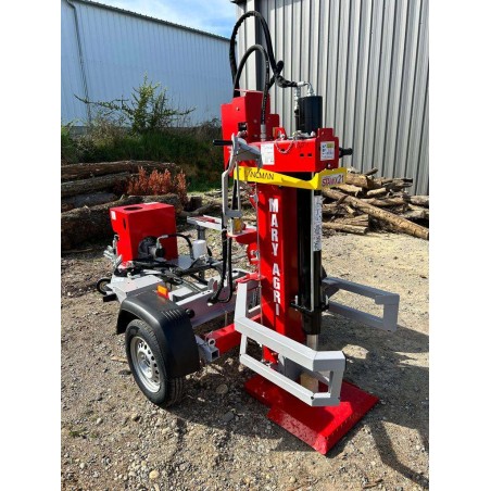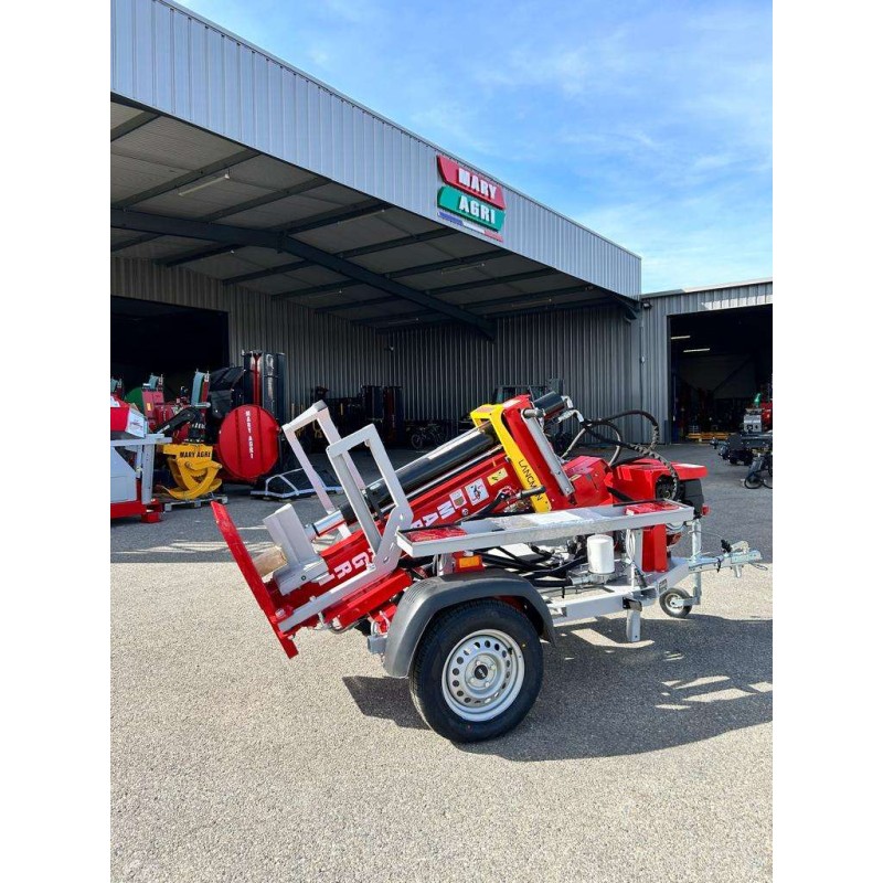 La fendeuse verticale 21 tonnes sur châssis routier Lancman est un équipement robuste et performant, idéal pour le fendage de grandes bûches et de bois durs. Avec une force de fendage de 21 tonnes, elle permet de traiter des bûches allant jusqu’à 1170 mm de longueur, grâce à une course de vérin de 1100 mm. Homologuée pour la route, elle est facilement transportable et équipée du système Coutlanc, incluant un compteur d’heures, un compte-tours et un indicateur de température, pour un suivi optimal des performances et de la maintenance.