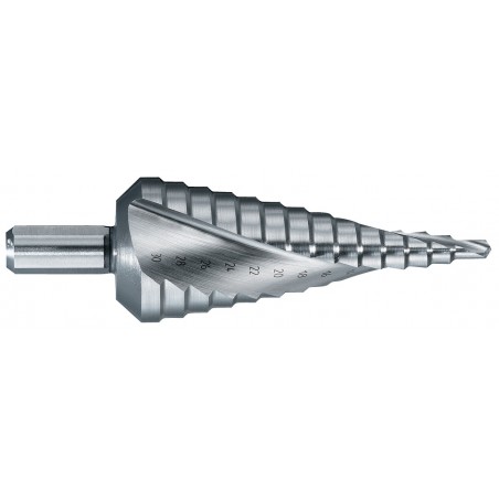 Foret performant pour le perçage rapide et intensif des tôles et plastiques résistants grâce à sa goujure hélicoïdale et son affûtage autocentrant. Attachement anti rotation, durée de vie supérieure.