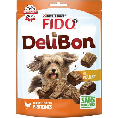 FIDO® DeliBon de savoureuses bouchées au poulet, la récompense parfaite dont votre chien raffolera à tout moment de la journée. FIDO® S’ENGAGE. Avec les friandises FIDO®, offrez à votre chien de savoureuses friandises élaborées avec des ingrédients de qualité soigneusement sélectionnés pour le plus grand plaisir de votre chien.