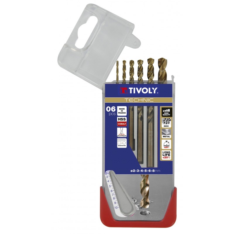 COFFRET 6 FORETS METAUX HSS 5% COBALT Ø2-3-4-5-6-8MM POINTE EN CROIX QUEUE CYLINDRIQUE - TIVOLY