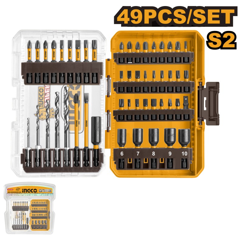 COFFRET MIXTE 49 PIECES EMBOUTS & FORETS HSS METAL - INGCO