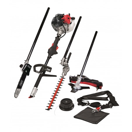 L'appareil multifonctions scheppach 4 en 1 peut être transformé d'un coupe-herbe en une débroussailleuse, un taille-haie ou une perche élagueuse en un seul mouvement. Les tâches de jardinage telles que l'entretien des pelouses, des haies et des arbres peuvent être effectuées en un rien de temps.