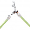 Prise à deux voies en laiton chromé. Elle permet le raccord de deux lignes équipées de raccords automatiques Quick-Click à une unique prise d’eau. Robinets à réglage indépendant. Installation sur robinet avec filet de 20-27 mm.