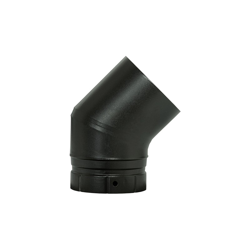 Coude à segment 45° émaillé pour le raccordement entre le poêle et le conduit de cheminée traditionnel.
