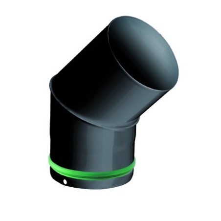Coude pour évacuation des fumées, permettant le dévoiement d'un conduit de raccordement - Monté avec joint viton - Apollo Pellets Simple Paroi Email 0,7 mm - Existe en Ø80 mm et Ø100 mm - Coude 90° et 45° - Finition noire.