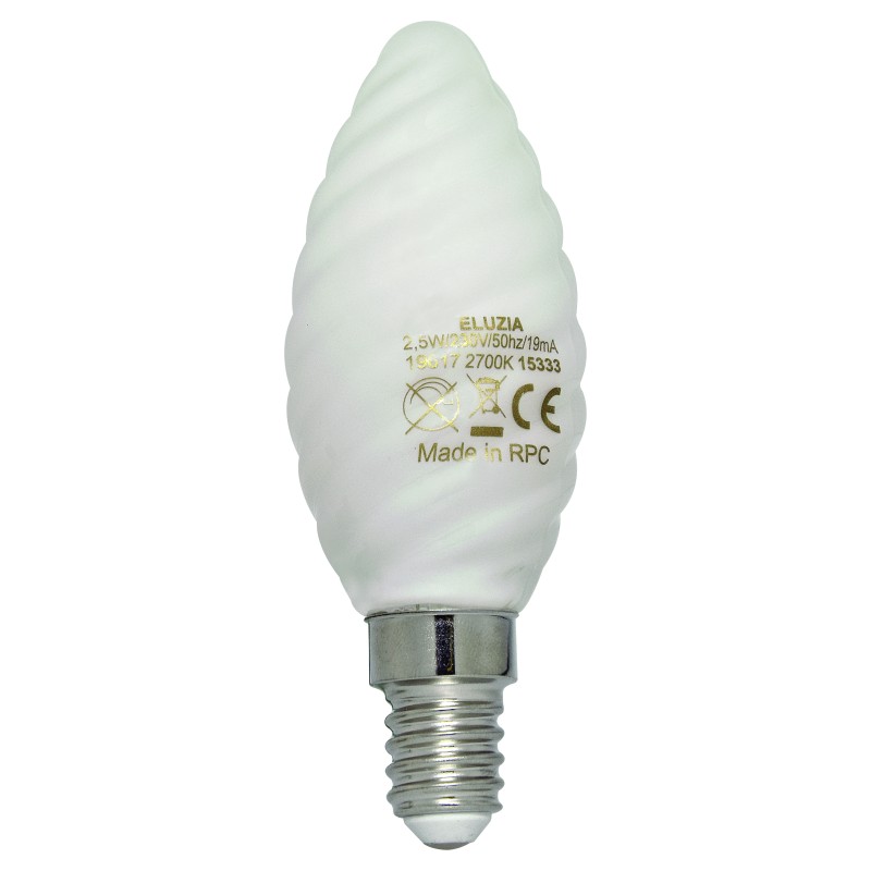 Ampoule LED Filament E14 Flamme torsadée Milky 2.5 W : 25 W Blanc chaud 3000 K - ELUZIA