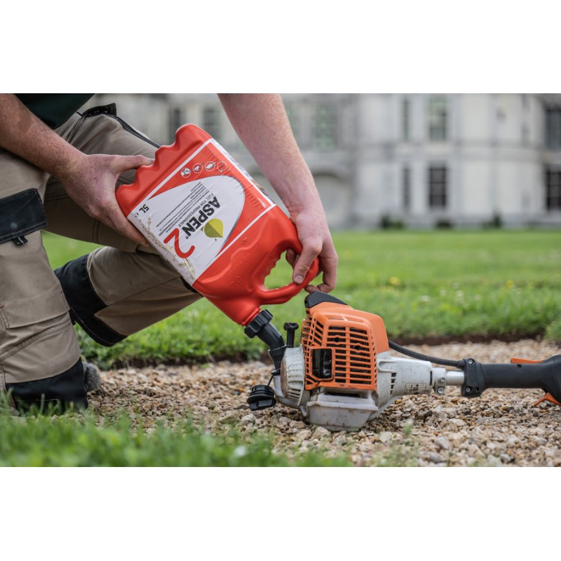 Aspen 2 est une essence alkylate déjà mélangée contenant 2 % d’huile 2 temps biodégradable, idéale pour les tronçonneuses, les débroussailleuses, les taille-haies, les mobylettes, les coupe-herbe et les autres moteurs à 2 temps terrestres.