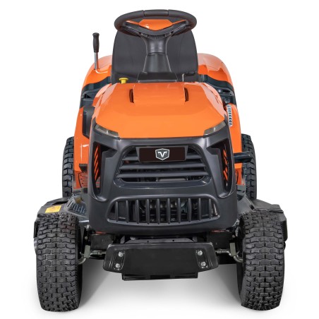 L'autoportée AR5402H de TEMVER est un tracteur tondeuse éjection arrière avec bac de ramassage qui convient pour les grands terrains, jusqu’à 5000m². Il permet de tondre jusqu’à 102 cm de largeur et à une hauteur réglable entre 30 et 90 mm.  Il est équipé d’une transmission hydrostatique qui offre un ajustement facile de la vitesse de tonte pour s'adapter aux différentes conditions de terrain, tout en garantissant un contrôle précis de la vitesse et une bonne maniabilité sans à-coups. Le tout pour rendre l’expérience de tonte plus agréable et sans effort.