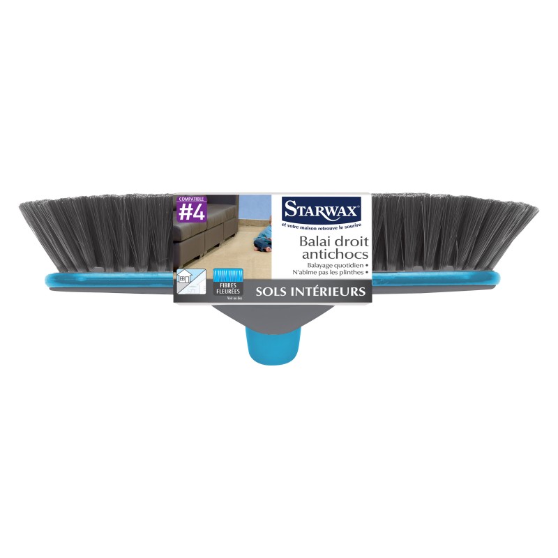 Le balai droit antichocs pour intérieur est parfait pour le balayage quotidien sur tous les types de sols intérieurs: Parquet et stratifiés, carrelage et sols plastiques, béton ciré et résine, marbre et pierre naturelle, tomette et terre cuite. Les contours antichocs n’abiment pas les bas de meubles, plinthes, mobilier… La douille du balai est inclinée pour un balayage sans effort.