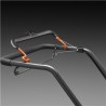 Equipée d'un plateau de coupe en matériau composite, ainsi que d'un guidon confort ergonomique, cette machine dispose d'un réglage de hauteur de coupe centralisé "facile" et de roues à roulements à billes.