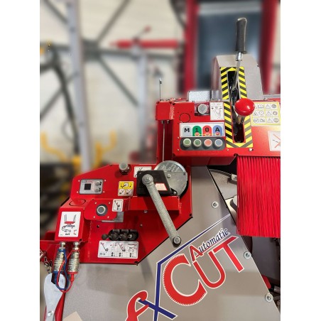 La SAF X Cut Automatic Lancman est une scie performante avec une lame carbure de 700 mm adaptée au chevalet incliné pour des coupes précises. Son tapis en trois parties, large de 43 cm, est extensible hydrauliquement et orientable à 15° pour une flexibilité maximale. Équipée d’une centrale hydraulique indépendante et de prises auxiliaires, elle permet un réglage fin de la vitesse du tapis et du chevalet. Le système COUNTLANC 440 intégré fournit des informations précises sur les tours, les heures de fonctionnement et la température.