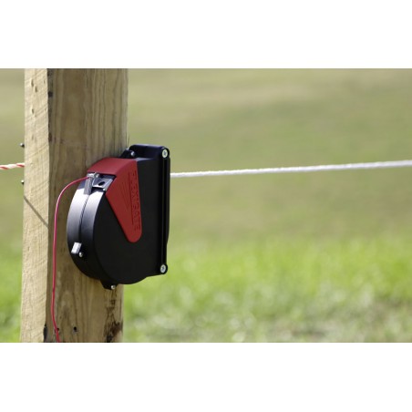 Avec Flexigate, vous pouvez électrifier sans problèmes les ouvertures jusqu'à 7,5 m. A chaque ouverture le ruban est automatiquement enroulé dans le tambour.