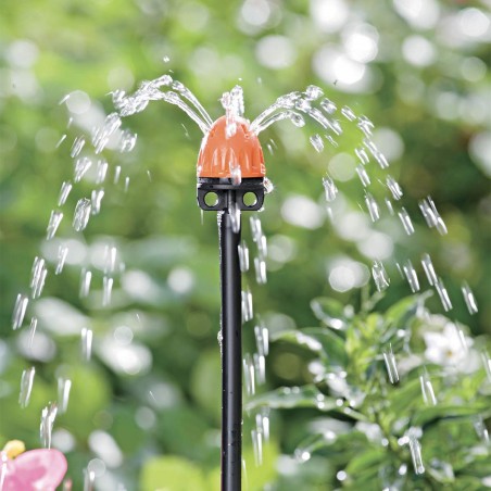 Lot de 10 goutteurs asperseur avec débit réglable pour toutes les exigences de l’arrosage goutte à goutte, s’applique facilement par pression sur le tuyau capillaire ou sur le tuyau collecteur.