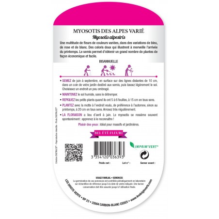 MYOSOTIS DES ALPES VARIÉ - CATÉGORIE 2 - LES DOIGTS VERTS