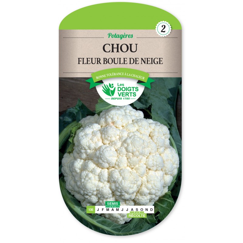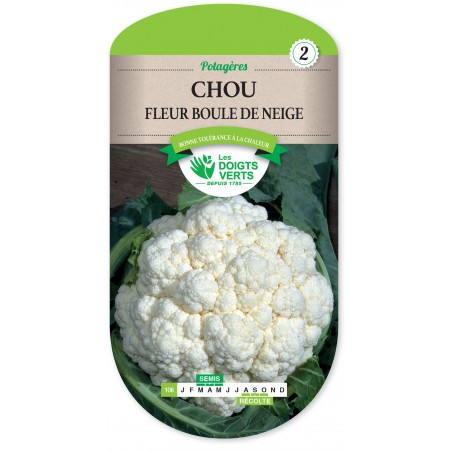 Un chou-fleur à récolter en été ou début de l'automne. Ses feuilles sont dressées, étroites, et sa pomme est peu volumineuse mais très blanche, tendre et compacte.
