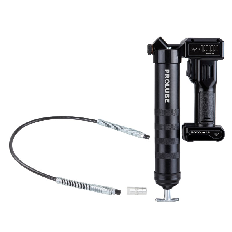 La pompe PROLUBE Rechargeable Grease Gun -12V est le premier pistolet à graisse au monde doté d'une batterie intégrée, une véritable révolution dans le domaine de la lubrification. Sa capacité de pompage inégalée, trois fois supérieure à celle des pompes à graisse manuelles, en fait un choix de premier ordre pour les garages, les ateliers et autres applications nécessitant une lubrification précise. La pompe à graisse est équipée d'une tête robuste en aluminium moulé sous pression, d'une soupape d'échappement d'air, d'un tuyau haute pression de 30" (750 mm), d'un coupleur hydraulique à 3 mâchoires et d'un canon à revêtement en poudre de première qualité qui garantit la durabilité de l'appareil pour une utilisation prolongée. Alimentée par une batterie Lithium-Ion légère et compacte de 2000 mAh, cette pompe à graisse innovante peut vider jusqu'à 7 cartouches de 14 oz (400 g) sur une seule charge complète, améliorant ainsi la productivité tout en réduisant les temps d'arrêt.