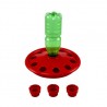 L’abreuvoir est composé de deux parties distinctes, qui s’emboîtent l’une dans l’autre. Dans le disque supérieur, il y a un trou central sur lequel on peut fixer la bouteille. L’abreuvoir à poussins est fourni avec 3 adaptateurs, chacun ayant un diamètre et un filetage différents, qui conviennent à différents types de bouteilles en plastique.