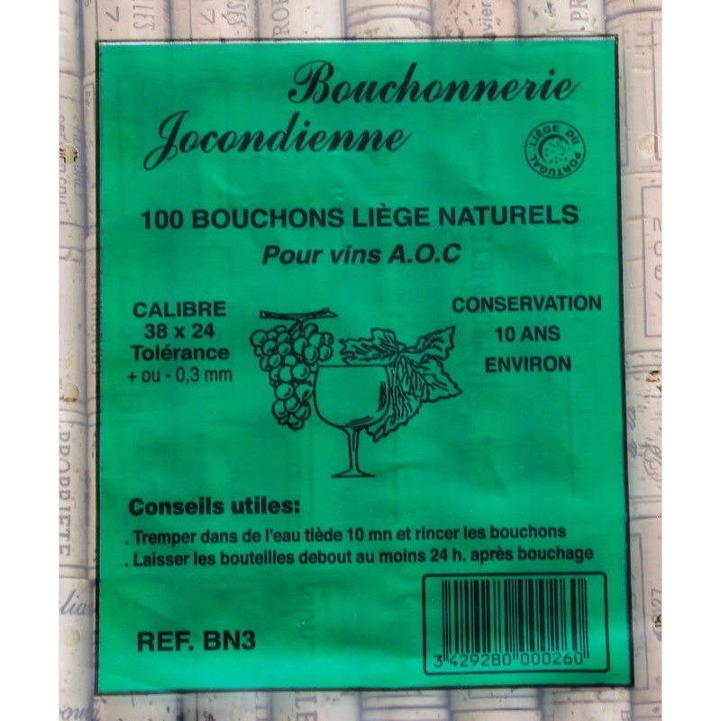100 bouchons en liège naturels pour vins A.O.C. (Appellation d'Origine Contrôlée).