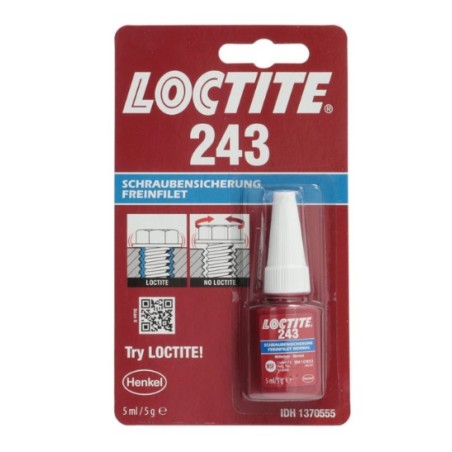 LOCTITE® 243 est un freinfilet bleu d’usage général qui fourni une liaisonde résistance moyenne. Il fonctionne sur tous les métaux, sans activateur, y compris sur les substrats passifs tels que l’acier inoxydable, l’aluminium et les surfaces revêtues. Il est prêt à être utilisé directement sur la plupart des fixations, même recouvertes d’huile, sans besoin de nettoyage.