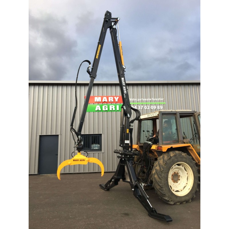 La Grue 670 est une solution performante et polyvalente pour vos besoins de levage, à 3,5m la capacité de levage est de 870 kg. Avec une portée de 6,7 mètres, elle est équipée d’une double crémaillère avec 4 vérins de rotation pour une précision et une flexibilité accrues dans tous les angles de travail. Elle dispose d'un distributeur ON/OFF. Ses béquilles en pantographes avec clapets de sécurité assurent une excellente stabilité, même sur les terrains les plus exigeants. La Grue 670 est dotée d'un rotateur de 3 tonnes et d'un grappin à ouverture de 123 cm.